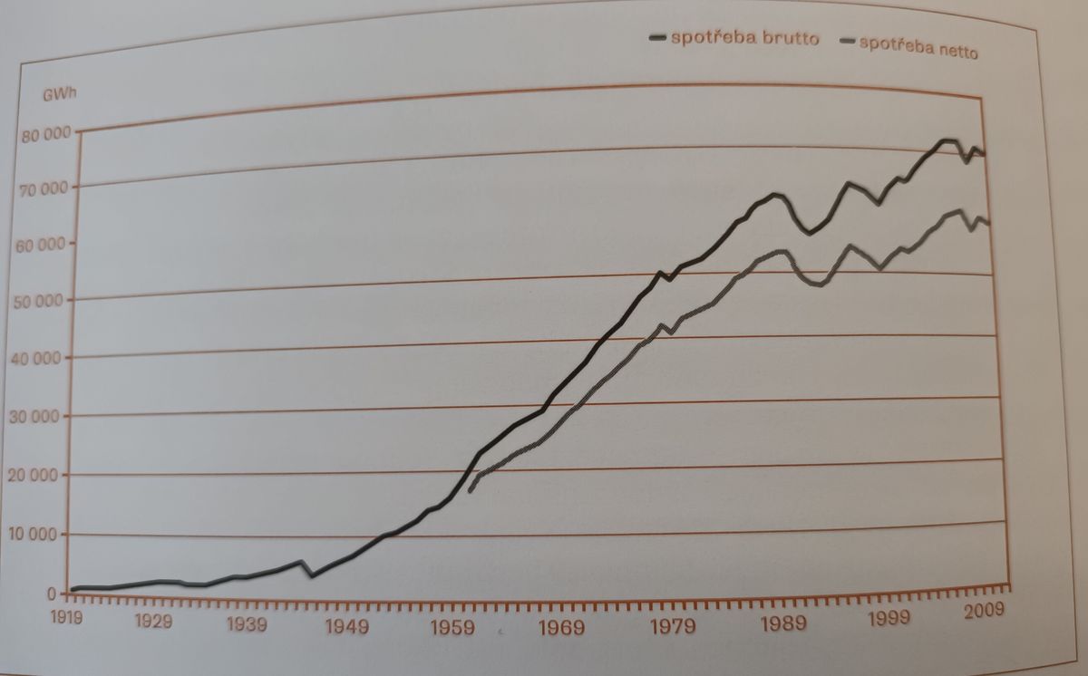 Protože v roce 1985 neexistovaly energy-charts.info a dokonce ani Energostat, data z tehdejší energetiky se dohledávají poměrně špatně. V Perspektivách české energetiky z dílny Pačesovy komise najdete jen tento graf brutto a netto spotřeby, který se však velmi pravděpodobně vztahuje pouze k české části ČSSR.