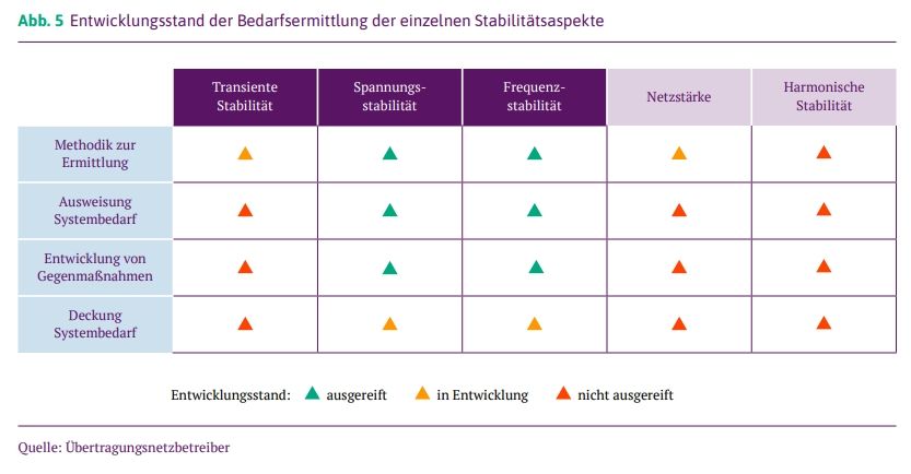 Zprávu o systémové stabilitě vydávají němečtí provozovatelé přenosových soustav (jsou celkem čtyři) každé dva roky. Když přitom porovnáte poslední dvě verze (číst to 2×, to už by byl tedy výkon i na Stefana), zjistíte, že stabilita německé soustavy se zhoršuje, a to především kvůli rostoucímu podílu OZE, nedostatečné síťové infrastruktuře a novým problémům s harmonickými frekvencemi. Sumarizační tabulka potvrzuje, že německý systém si nepolepšil v napěťové a frekvenční stabilitě a pohoršil si v přechodové stabilitě, odolnosti sítě i harmonické stabilitě.