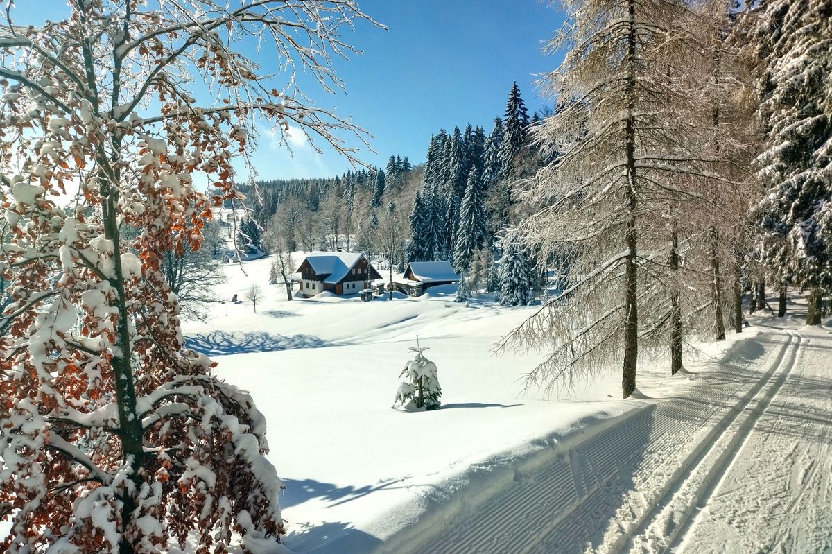 Kořenov je rozlehlá horská vesnice přímo na hranicích NP Krkonoše a CHKO Jizerské hory. Je to běžecký ráj, zajezdíte si tady v nádherné krajině a kromě svátků i bez velkých davů. Vždy tady bude méně lidí než na Jizerské magistrále.