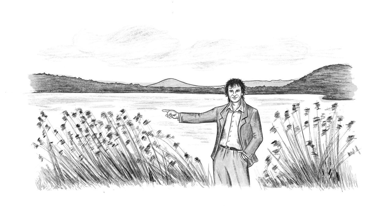 „No jasně, počítač přijde až za rok, tak výpočetka zatím sedí tady. Podívej se na tu krásu. Támhle za těmi stromy je jezero a ty lesy kolem. Za první republiky to byla nejoblíbenější rekreační oblast liberecké a pražské smetánky. Jezdil sem dokonce i ……….“