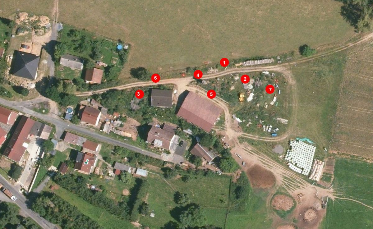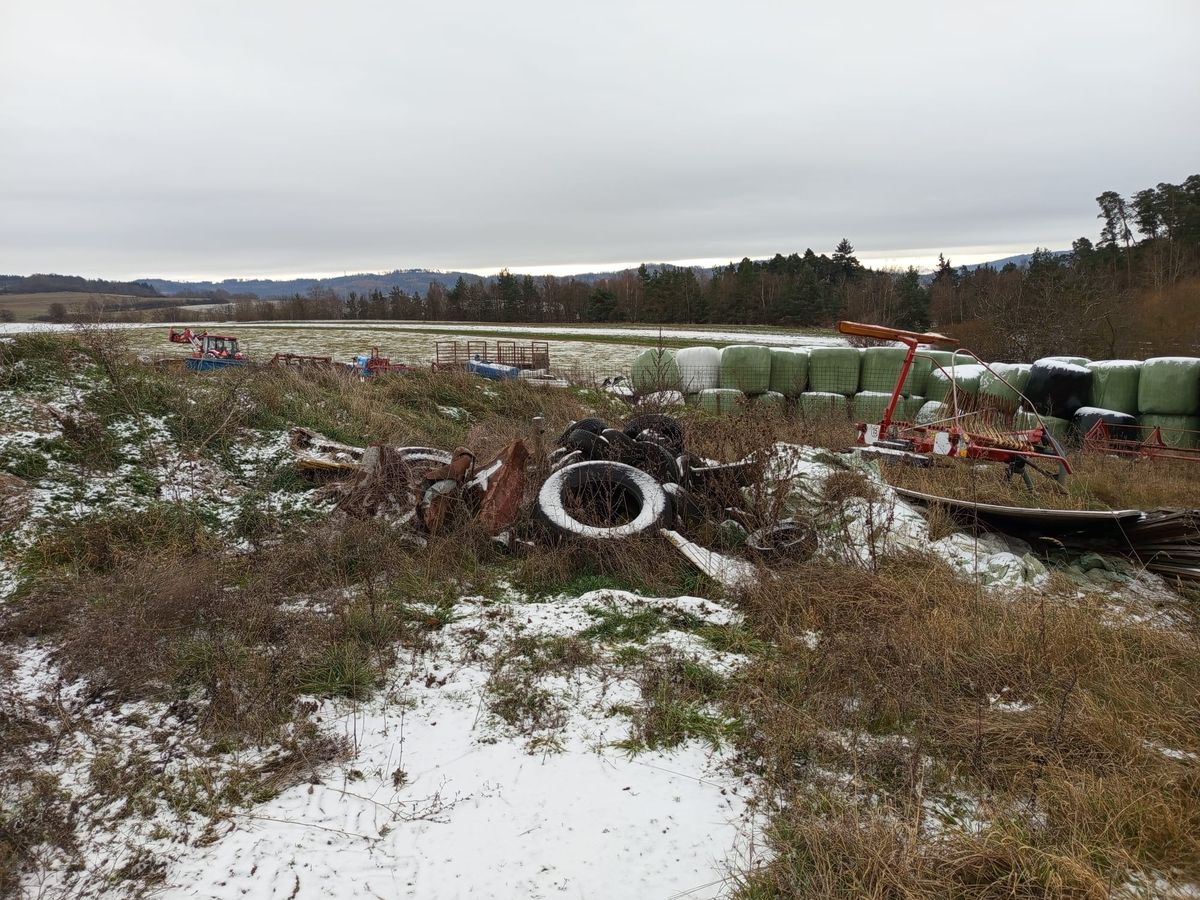 Podnět popisoval výskyt pneumatik, kovových konstrukcí, dřeva, plastů a dalšího technického odpadu na více pozemcích v k. ú. Třebčice, dlouhodobě uloženého v krajině.
