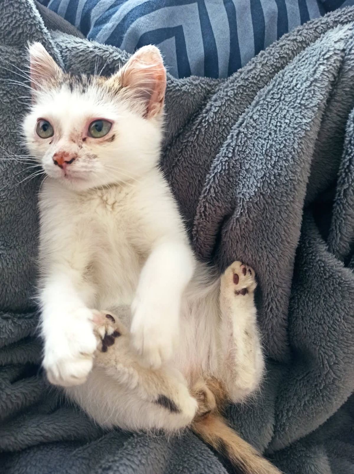 Za popelnicemi, mezi kousky papíru a prázdnými krabicemi, se krčila drobná klubíčka života. Tři malí bráškové, hladoví, zmrzlí, se snažili spát. Dva z nich byli silnější, zjevně zvyklí prát se o místo i o zbytek jídla. A mezi nimi – jeden úplně drobný, jakoby průsvitný, sotva dýchající kocourek. Ten, který vypadal, že to už brzy vzdá. A právě ten si vybral ji.