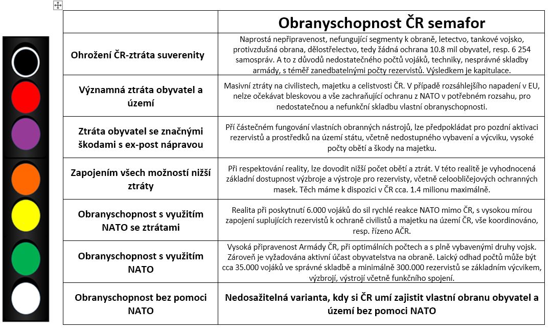 Semafor k nepopulistickému hodnocení Obranyschopnosti ČR: