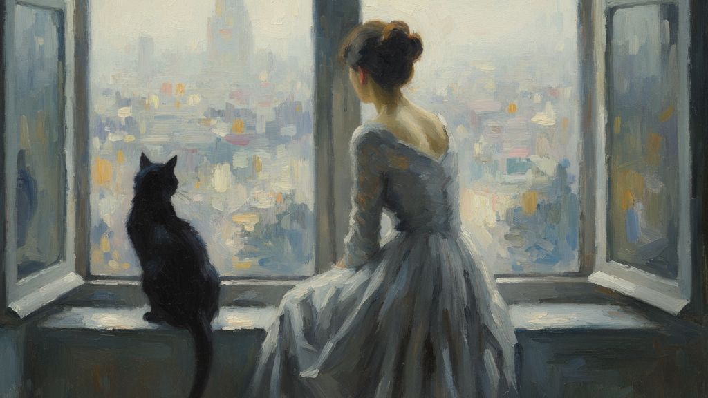 Ale co když se obrátí zrcadlo? Co když ten tichý tvor, který sedí na parapetu a sleduje nás, nedělá jen inventuru svého teritoria, ale provádí estetickou kritiku? Co když jsme my ten umělecký objekt?
