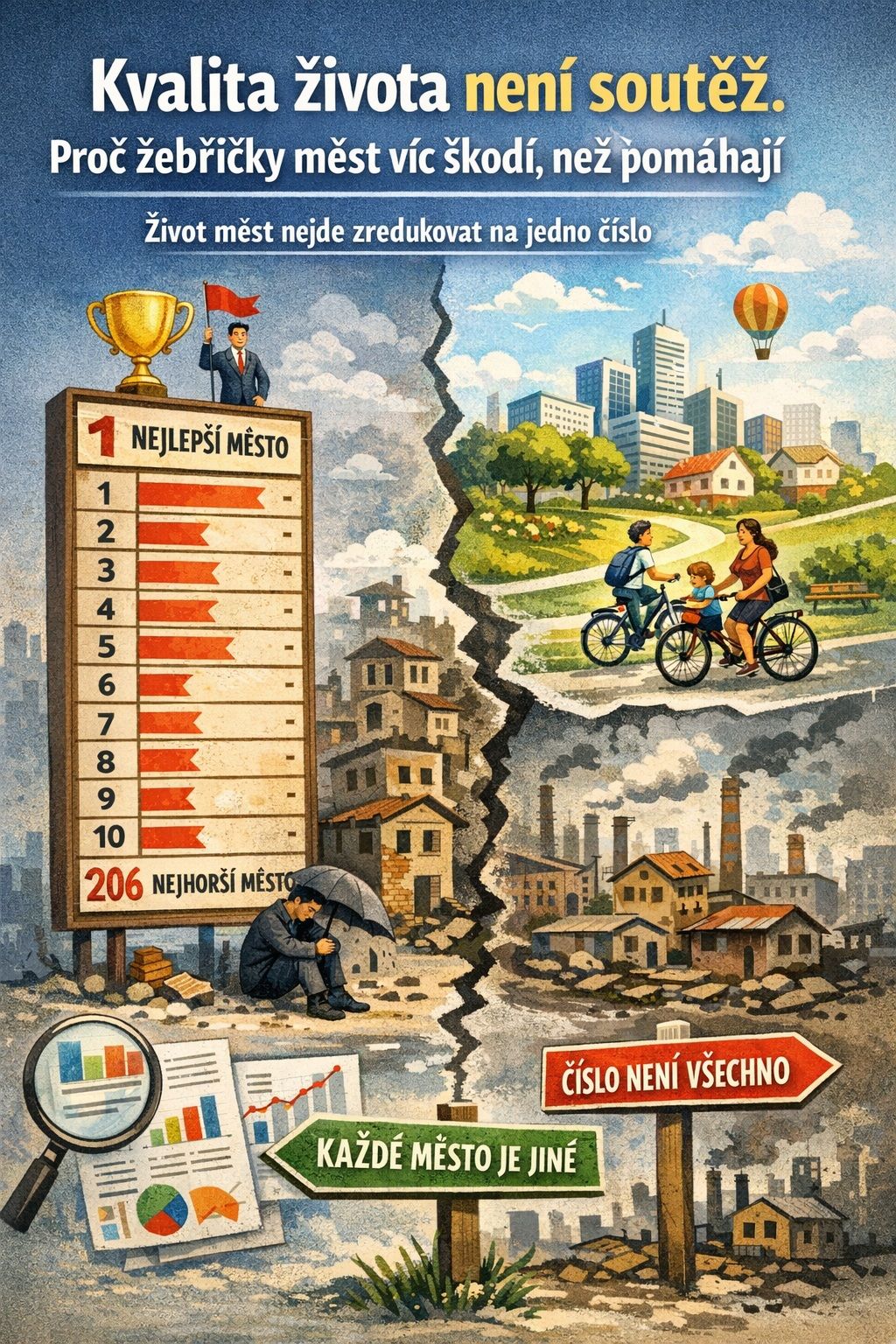 Kvalita života podle tabulky? Ne, takhle se města hodnotit nedají. Skutečná debata by neměla být o vítězích a poražených, ale o tom, jak zabránit dalšímu rozevírání regionálních nůžek.