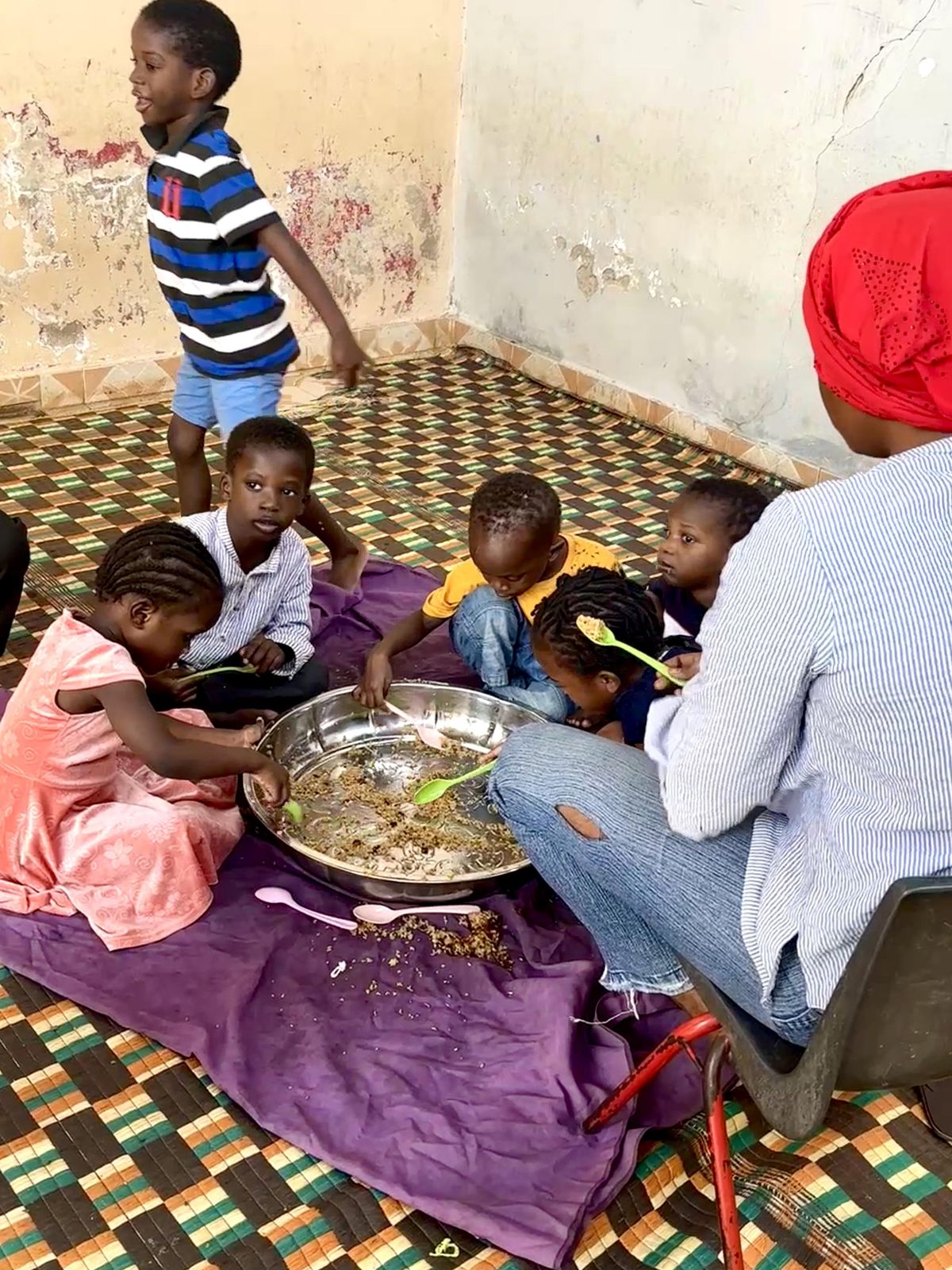 Děti zde jedí společně z jednoho velkého tácu.