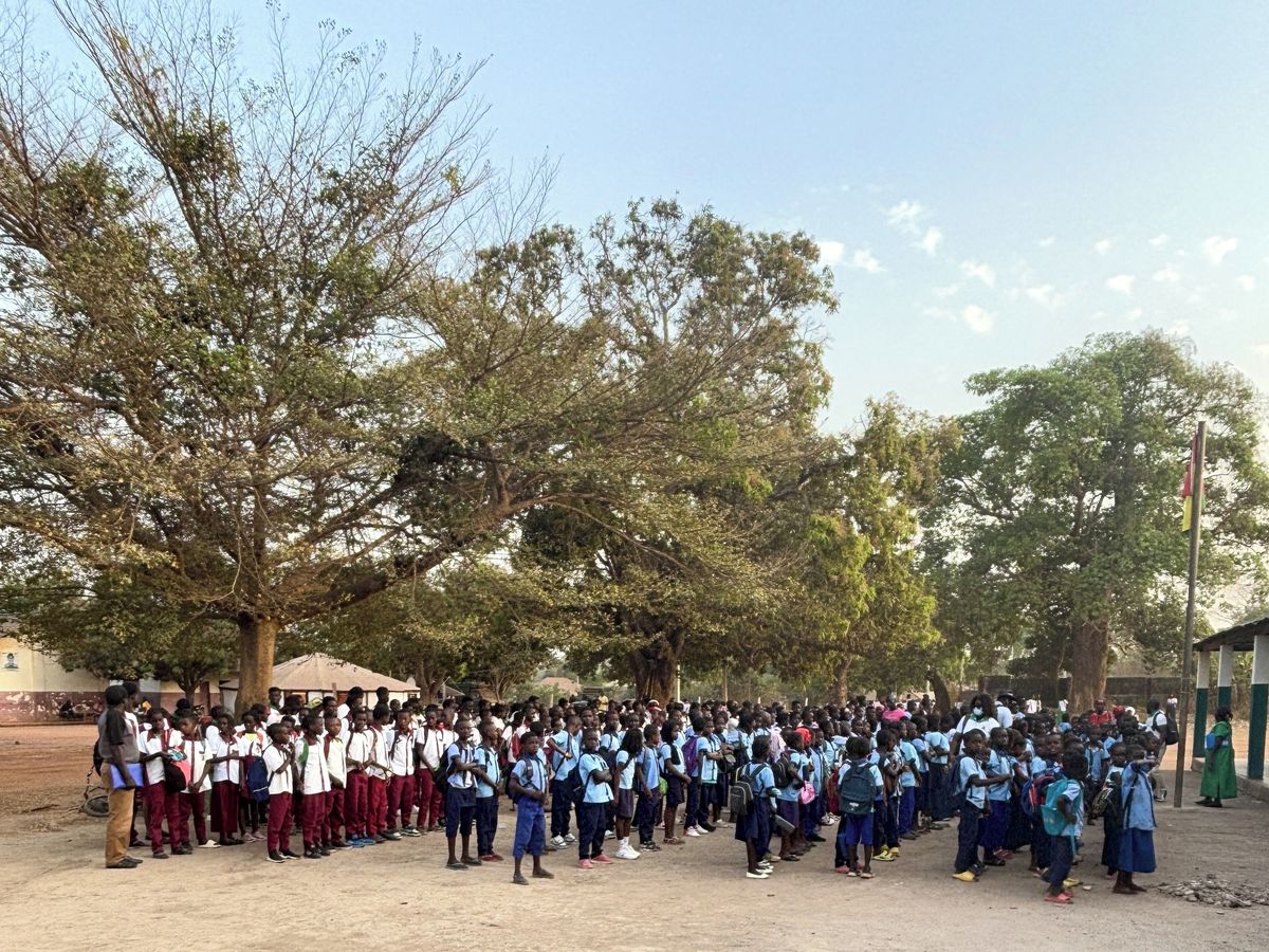 Jeptišky nás znovu vítají s otevřenou náručí. Nakonec jsme i rádi, že tu ještě nějakou dobu strávíme, je nám tu fajn. Odpoledne si dávám šlofíčka a Terezka tvoří, posledních pár dní bylo zase trochu náročnějších, a projevuje se menší únava. Jeptiška Irma nás k večeru vezme na návštěvu školy. Škola tu probíhá ráno a potom odpoledne, děti se tedy přes poledne neučí a pokračují zase až odpoledne. Škola následně končí o půl 7 večer. Opět se jedná o školu, kterou nepodporuje stát a rodiče ji tedy musí svým dětem platit. Je tu něco kolem 700 dětí, které vypadají do učení velmi zapáleně. Po ukončení školního dne se děti sejdou před školou u vlajky Guinea-Bissau a zpívají hymnu.