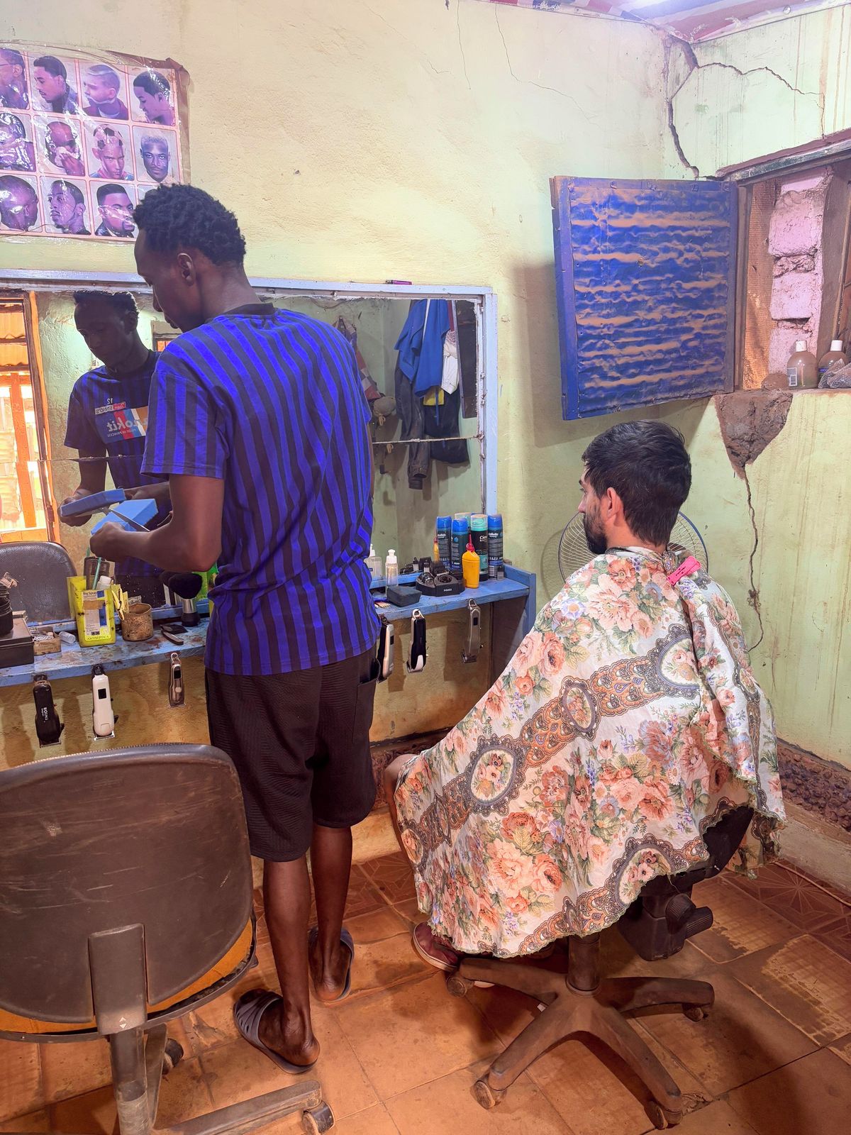 Cestou zpátky si musíme zajet do druhého největšího města v Guinea-Bissau, dochází nám peníze a jeptišky budou doma až odpoledne. Je to 30 km z Bambadinca, takže necelá hodinka cesty. V bance vybereme peníze a vyrážíme najít holiče, moje vlasy už potřebují trochu zastřihnout. Podaří se nám najít kadeřnictví, ale nikdo tu není. Prý si holič odskočil a máme na něj chvíli počkat. Po chvíli přichází holič, neumí anglicky, a tak mu jen gesty ukazuji, že potřebuji ostříhat. Profesionálně přikývne a bez dalšího slova nebo dotazu, jak bych chtěl ostříhat se pouští do díla. Zvládl to na jedničku, a to i s úpravou vousů. Ještě si najdeme místo, kde nám nachystají něco k obědu a pomalu se vracíme do Bambadinca.