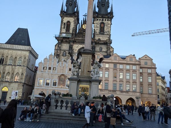 Když na vrchol sloupu dopadá polední slunce, jeho stín protne jemnou linku v dlažbě. Pražský poledník. Drobné znamení pro oči, ale hluboké pro město.