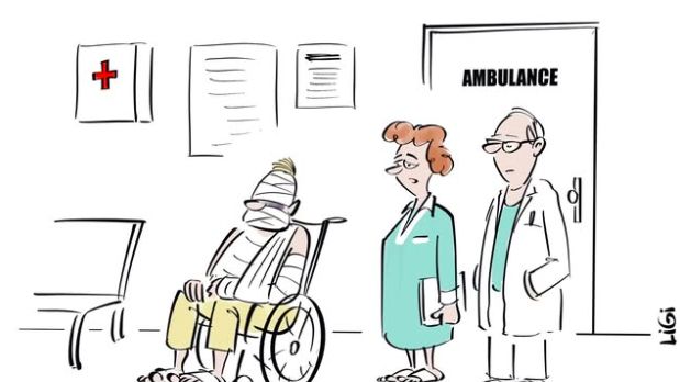 Venku mezitím houká sanitka, možná pro dalšího pacienta veřejného prostoru,