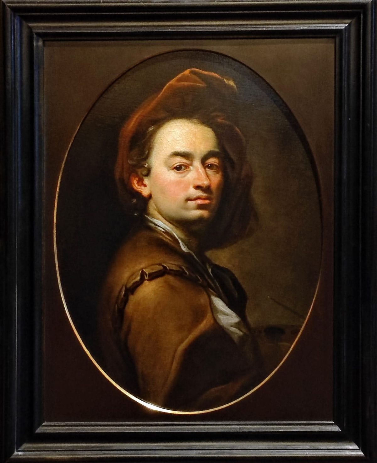 Oválné plátno, sevřené světlem. Autoportrét kolem roku 1697 není pietní, ale sebevědomý. Brandl se stylizuje jako umělec–osobnost, ne cechovní řemeslník. Banyánový čepec naznačuje světoběžnost, paleta je symbolem moci nad obrazem. V jeho pohledu je výzva: „Dívej se.“