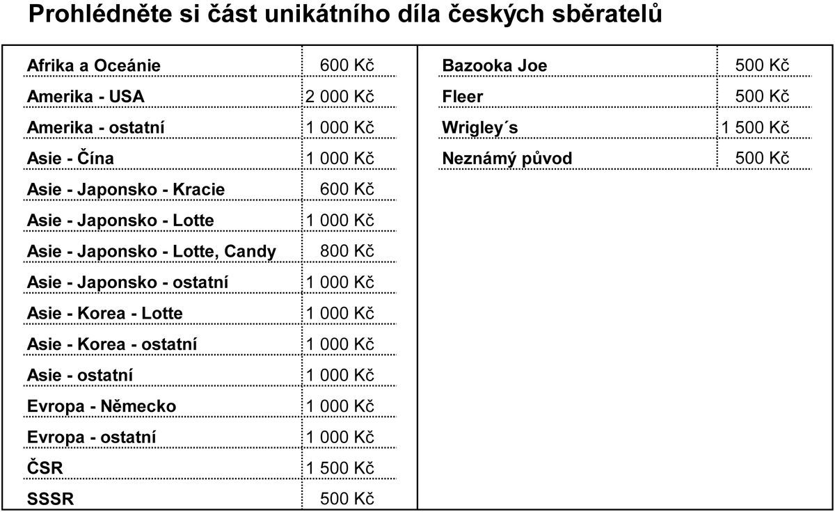 Chyběla mi tam výzva k prodeji dětských sbírek obalů ze žvýkaček. Řada lidí je kdysi měla, ale už je vyházela, protože netušili, co s nimi. A to je problém mnoha sbírek napříč různými obory. Mohla tam být i žádost o pomoc se získáním současných obalů ze žvýkaček, které návštěvníci vyžvýkají třeba na cestách. Třeba na cestě do Turecka, kde mají zajímavé krabičky se žvýkačkami s mnoha příchutěmi.
