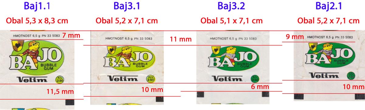 Na první den to měly být žvýkačky z éry Československa. Co se vyrábělo u nás (Bajo, Pedro, Ping, Pupu, Rekord, Sevak, Zajda), a co se sice vyrábělo v okolních zemích, ale dalo se koupit i tady. Nebylo to úplně striktně rozděleno, abych neměl ukázku moc chudou. Samozřejmostí byly žvýkačky BAJO s vkládanými obrázky. Sestavování plakátu s těmito obaly a obrázky mi trvalo několik hodin a donutilo mě to udělat si pořádek ve sbírce. Dokázal jsem tak přesně definovat čtyři různé typy obalů BAJO a přesně popsat jejich rozdíly. Liší se v mezeře mezi dvěma oválky, a v mezeře mezi cenou žvýkačky a černou značkou pro střih obalu. Nakonec mi ještě dva obaly chybí, což mě hodně překvapilo.