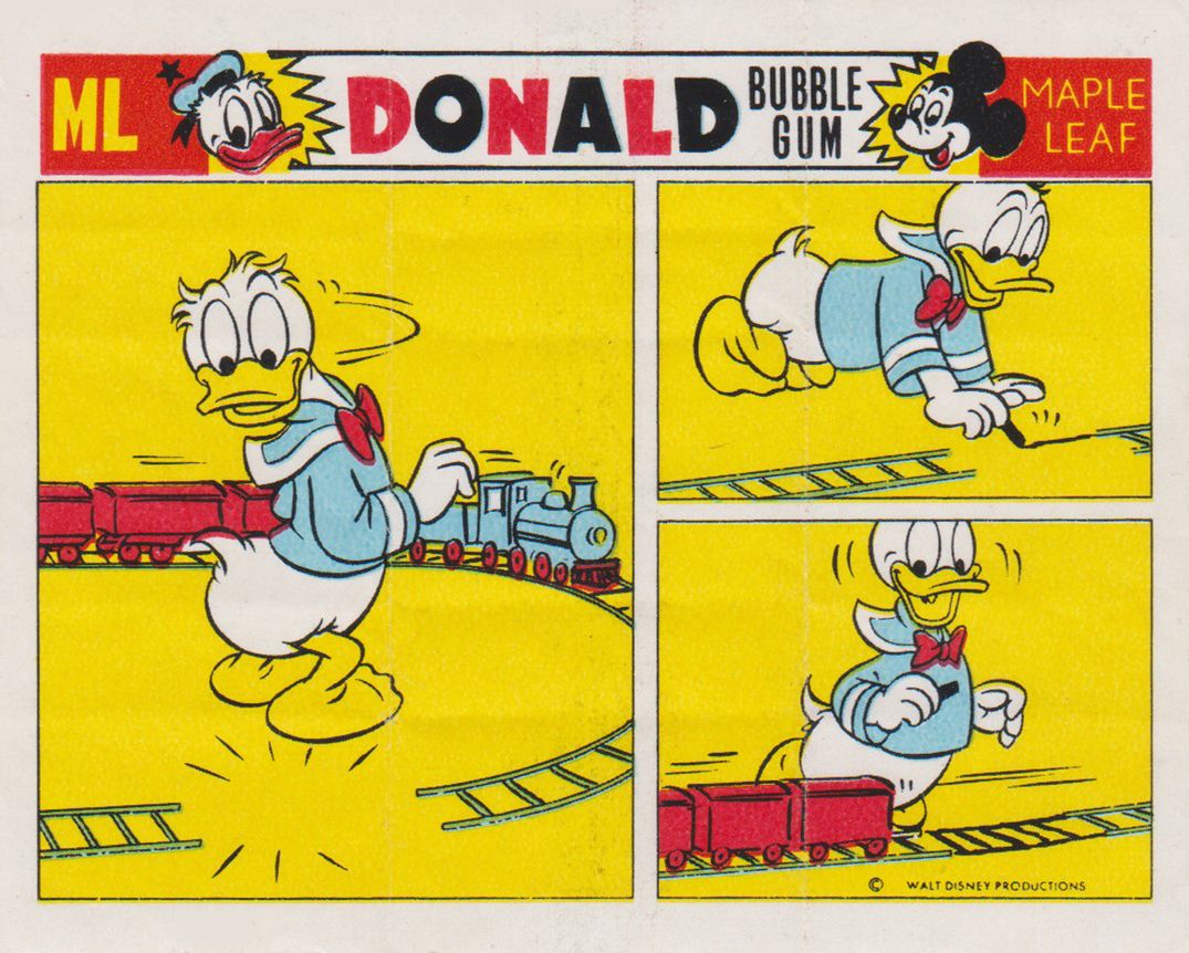 Vždy si přitom představuju, jaká by to byla nádhera, kdyby taková série existovala na velkoformátových obrázcích ze žvýkaček. Mnozí si ještě určitě vzpomenou na žvýkačky Donald.