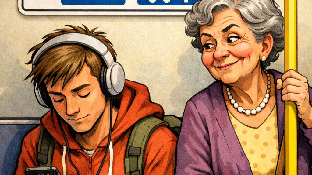Uvolnit místo starším bývalo samozřejmostí. Dnes je to spíš situace, kdy se chvíli rozhlížíme, váháme – a někdy raději děláme, že si ničeho nevšímáme. Proč by přitom mělo být normální nabídnout sedadlo těm, kteří ho potřebují víc?