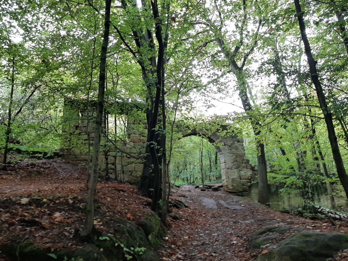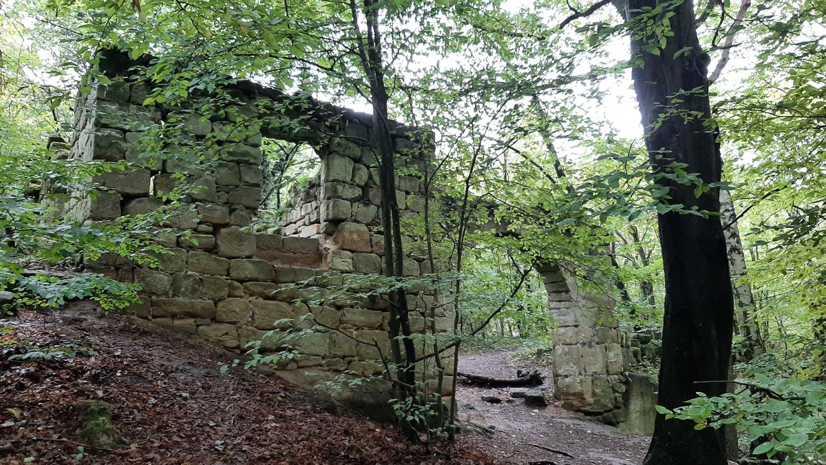 Obhlédli jsme celý statek a jeho okolí. Kromě zbytků zdí, jsme objevili i do skal tesané sklepení, které toho času přikrylo podzimní listí a učinilo ho tak téměř neviditelným.