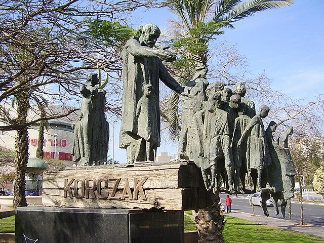 Tři proslulé židovské osobnosti viděly (mimo mnoha jiných) srdceryvnou poslední cestu Janusze Korczaka a „jeho“ dětí, židovských sirotků, které zachránil, pečoval o ně, léčil je, vzdělával - a odmítl je opustit i v okamžiku, kdy šlo cca 192 dětí na jistou smrt. Sochy a památníky tohoto nevšedního muže najdeme takřka po celém Polsku. Jeho knihy se čtou dodnes, proslavená je také Korczakova teorie dětské psychologie.
