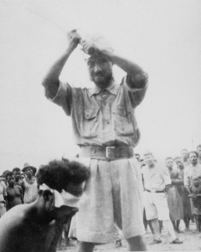 Jmenoval se Leonard George Siffleet. Život sedmadvacetiletého Australana, který se těšil domů za svou snoubenkou Clarice Lane, vyhasl 24. října 1943 na pláži města Aitape na severním pobřeží Papuy Nové Guineje. Poručík Yasuno Chikao zvedl samurajský meč shin-guntō - a před publikem složeným z vojáků a příslušníků domorodých kmenů, kteří byli spojeni s Japonci, Siffleeta jedním máchnutím ostrého břitu sťal.