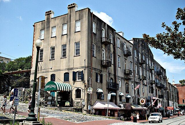 River Street v Savannah: přímo pod ní vede další ulice, kde stával Pulaski hotel