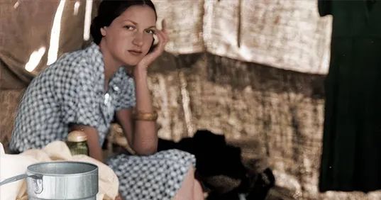 Naše vyprávění začíná v horkém létě roku 1939, kdy americká fotografka Dorothea Lange (1895-1965) bloudila po Oregonu. S posvěcením vlády a státního úřadu Farm Security Administration (FSA) plnila zadání své práce, které znělo: Zdokumentovat dopady Velké hospodářské krize na venkov a život migrujících dělníků; zmapovat jejich životní podmínky, práci, plat - a vše vyfotografovat! Stát tyto fotky potřeboval k tomu, aby v Kongresu prosadil miliardové dotace na sociální programy (tzv. New Deal).