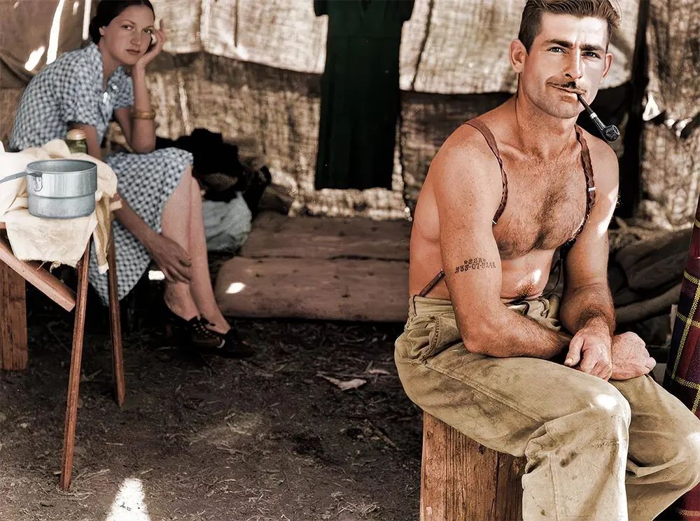 Tak fotila. Poté se rozloučila, sbalila si aparát a se stálým ohlížením šla dál. „Nešli mi z hlavy. On i ona. Modlila jsem se, aby fotografie vyšla tak, jak jsem zamýšlela. Aby byl vidět ten fantastický kontrast.“ říkala. A hlavní snímek se povedl na jedničku. Sotva byla fotka krasavce s fajfkou zveřejněna v TIME jako součást série portrétů migrujících dělníků s popiskem Nezaměstnaný dřevorubec, 27 let, má vytetované číslo sociálního pojištění, aby ho nikdy nezapomněl; za loňský rok vydělali s manželkou dohromady 550 dolarů, Američanky se tak trochu zbláznily!