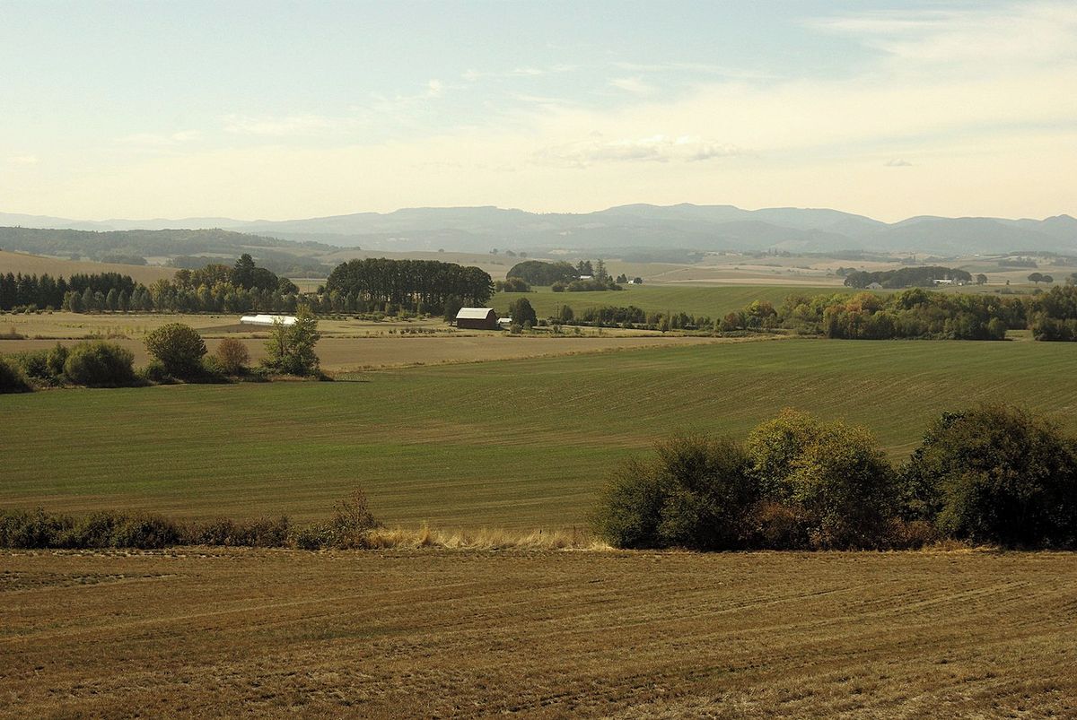 Pohled na údolí Willamette v severní části okresu Polk v Oregonu, poblíž Bethelu. V této oblasti Dorothea fotila
