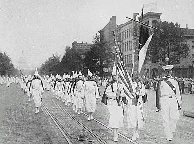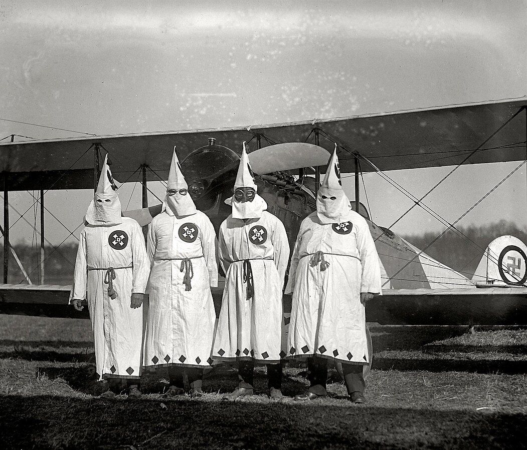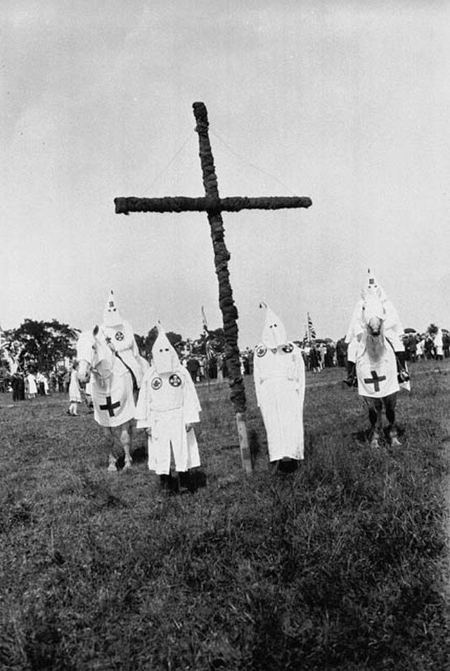 Nejprve trocha historie pro zasazení celého kontextu neskutečné fotografie: Ku-klux-klan (KKK, Klan) je název řady tajných a militantních organizací v USA. Je definován jako spolek, který prosazuje nadvládu bílých, rasovou segregaci, antisemitismus, rasismus, antikatolicismus a odpor k přistěhovalectví. KKK prosazuje „očištění“ americké společnosti a je považován za fašistickou extremistickou organizaci. Vznikl na otrokářském Jihu Spojených států. Dělí se na tři hlavní proudy, kterým se říká První, Druhý a Třetí Klan - ty vznikaly a zanikaly postupně. O co třem Klanům šlo?