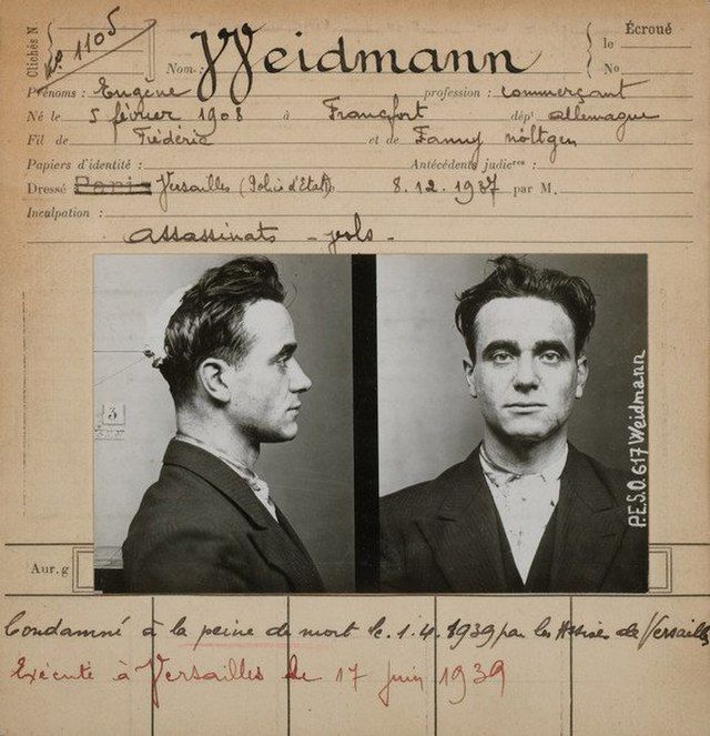 Rodák z Frankfurtu nad Mohanem (5. února 1908) Eugen (Eugene) Weidmann by mohl mít všechno, kdyby se v určitém okamžiku nevychýlil jeho život na onu šikmou plochu. Bezesporu velice inteligentní a pohledný chlapec byl v době první světové války „uklizen“ k prarodičům. To pak u soudu zmiňoval jako klíčový zlom: „Můj táta byl bohatý, podnikal. Vyvážel věci, jsme Židé, uměl to. A asi jsem mu překážel, tak mě odvezl do Bavorska ke starým. Ti se jen modlili.“ říkal cynicky.