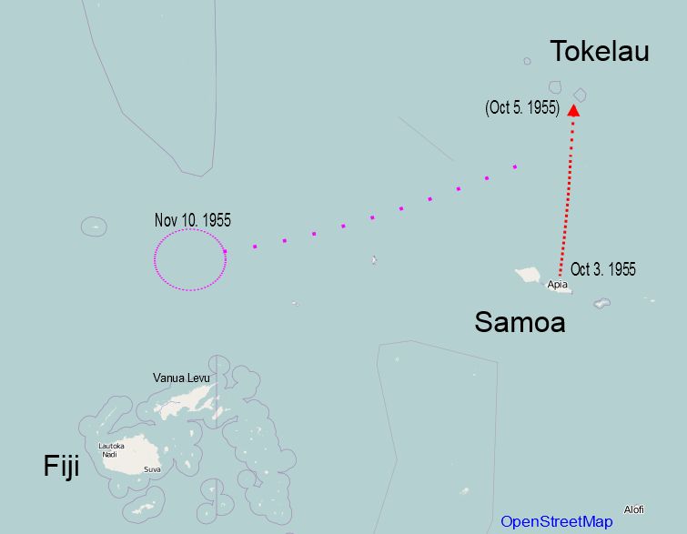 Čtvrtek 6. října 1955. V přístavu na atolu Fakaofo v souostroví Tokelau vládne dusivá atmosféra. „Už je večer. Neobjevila se ráno ani odpoledne. Já už nebudu čekat!“ rozčiluje se radiotelegrafista. Je nervózní, zuřivě kouří a rozhodne se neposlechnout laxní nadřízené, kteří mu jako vždy radí: „Ta loď má jen zpoždění. Však víš, co je ten kapitán zač. Prostě počkej!“