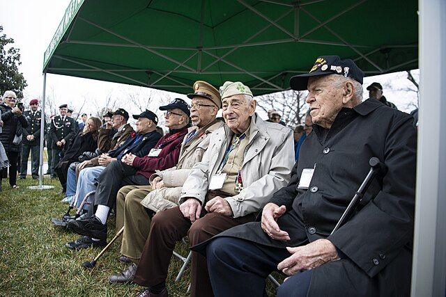 Slavnostní ceremoniál připomínající 79. výročí bitvy v Ardenách na Arlingtonském národním hřbitově dne 25. ledna 2024