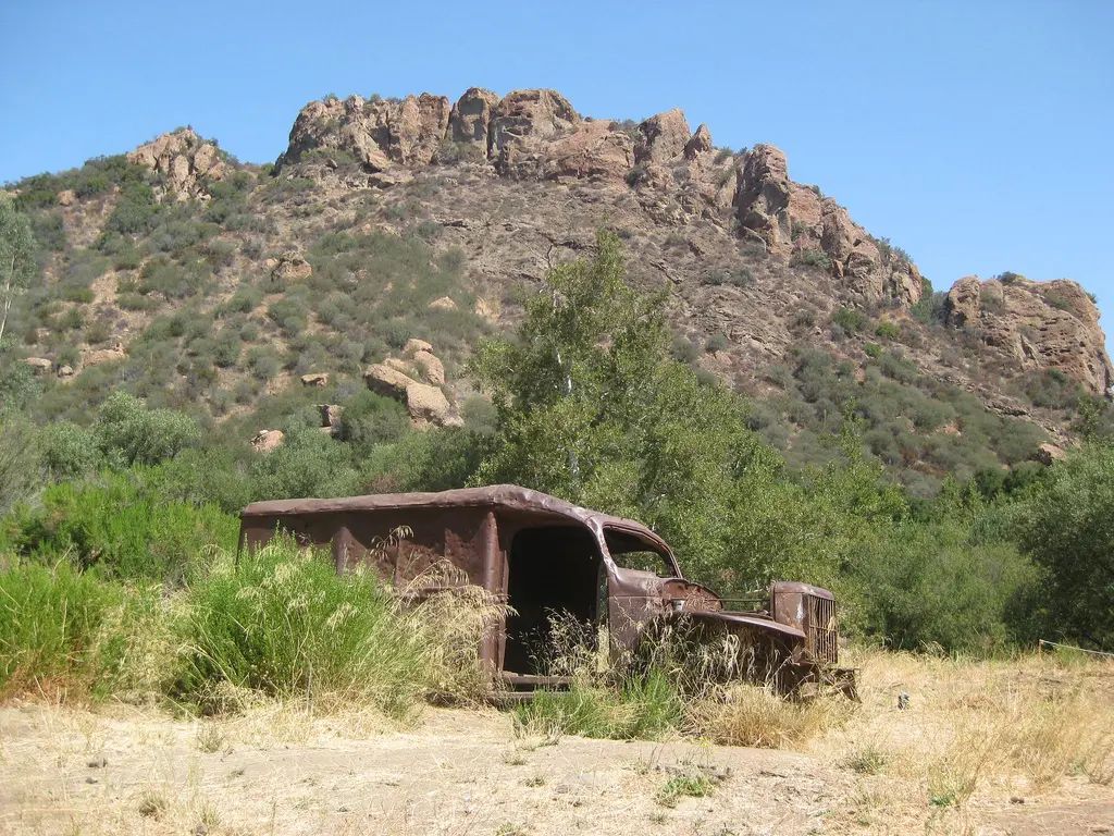 Lokalita, ve které se natáčel seriál M.A.S.H ve státním parku Malibu Creek. Vrak sanitky Dodge WC54 na pozadí známého panoramatu ze znělky seriálu.