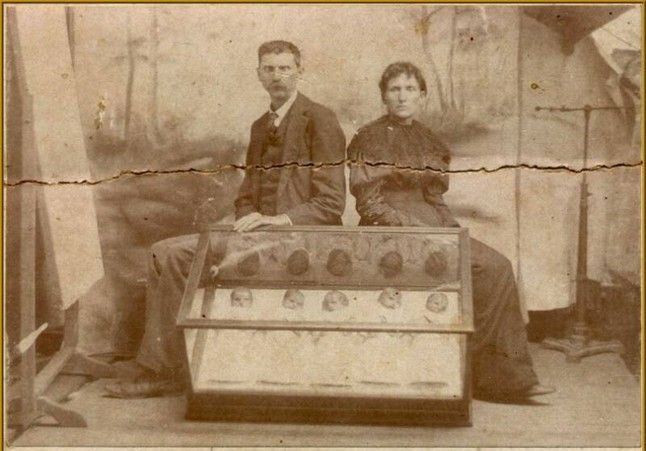 Tato fotografie se rozlétla do celého světa. Šokující výjev zobrazuje rodiče - EIizabeth a Oscar pózují s vitrínou, kde leží těla jejich synů