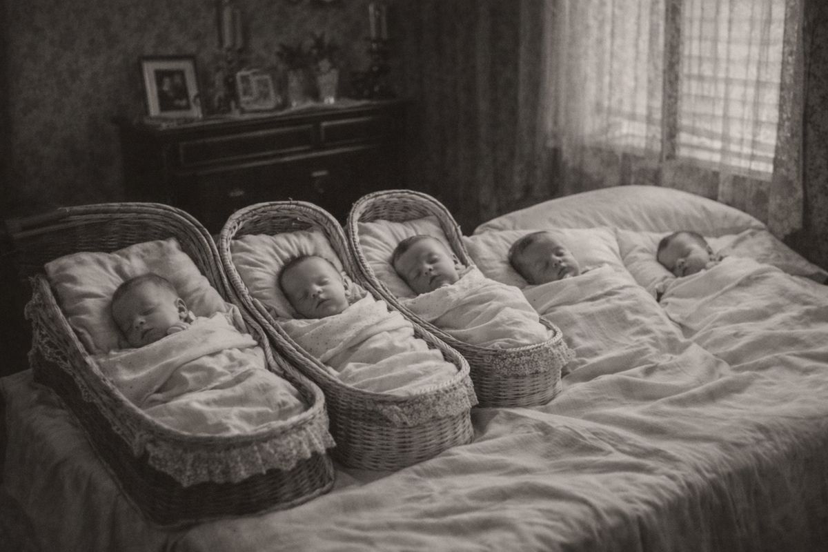 A dopadlo! Paterčata přišla na svět během jedné hodiny (uvádí se čas mezi devátou a desátou večerní) 29. dubna roku 1896. Porod samozřejmě vedl Matthews, který si při spatření pěti identických a kupodivu čilých a zdravých kluků mnul ruce. Ne pýchou nebo štěstím! Měl zcela zištné úmysly a věděl, že „ti hloupí lidé“ udělají vše, co jim slovutný odborník řekne. „Jen ty děti musí přežít! Na tom můj plán stojí a leží!“ vykládal šeptem otci Oscarovi.