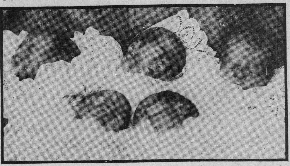 Ten jako obvykle zprvu nadával a láteřil: „To snad není možný! Kdo to má živit!“ Ale když poslouchal naléhavý šepot doktora Matthewse, rozsvítila se mu očka. Zatímco Elizabeth po přestálém utrpení ležela a ohromeně si prohlížela pětici černovlasých nádherných kloučků, které pojmenovala podle jmen ze svého snu - Marek, Matouš, Lukáš, Jan a Pavel - doktor Matthews se nenápadně vytratil a utíkal do redakce místních novin, kde oznámil tu neuvěřitelnou novinu. Tím dal do pohybu hotovou lavinu.