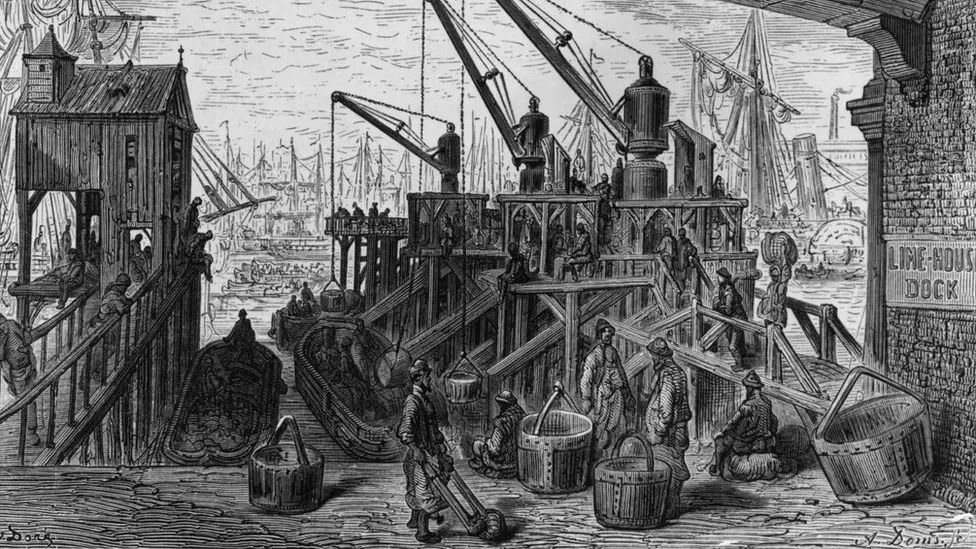 Přístavní dělníci u Temže museli ráno vstávat na výklad lodí…