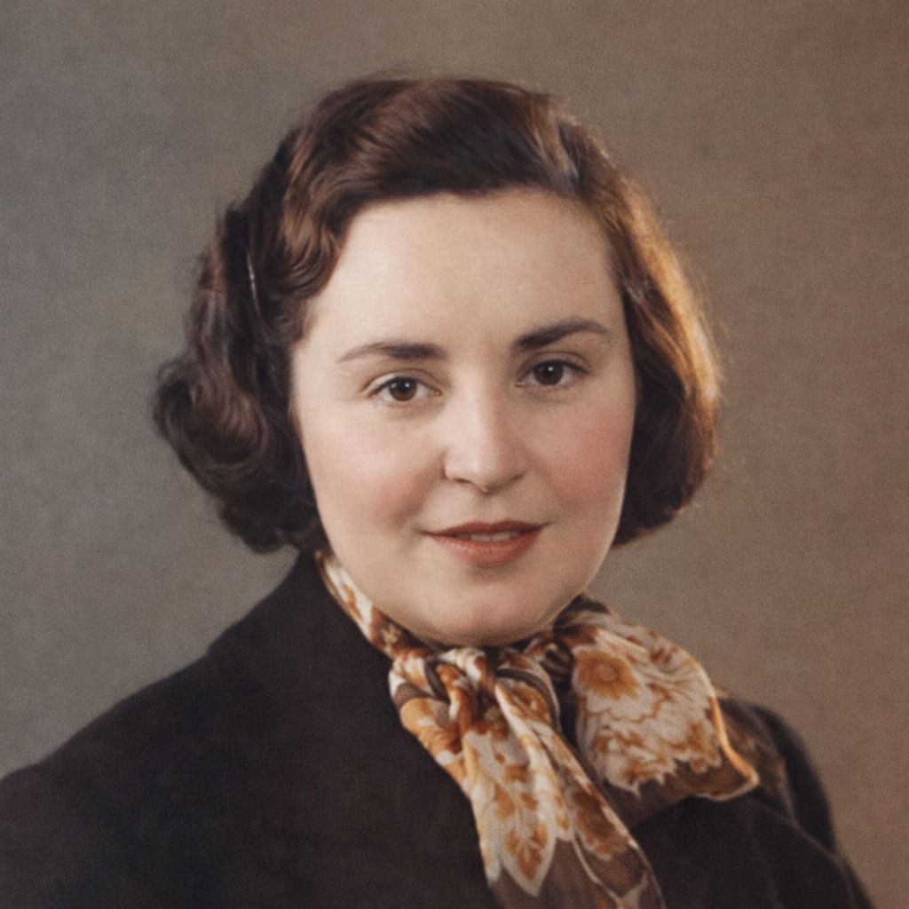 Mírně upravená fotografe paní Ježkové v době jejího mládí. Pěkná žena. Originální foto (téměř stejné, jen čb) lze vidět na sociálních sítích