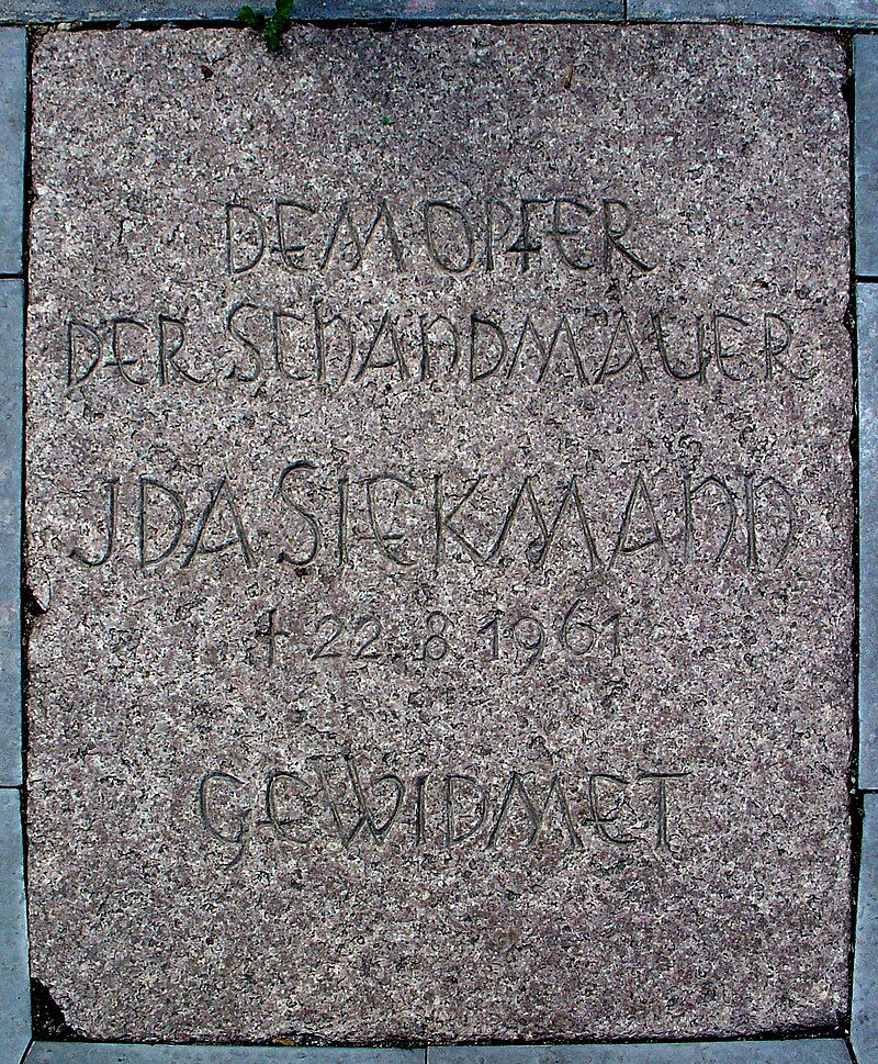Zpracováno podle: Berliner Experiences, Chronik der Mauer - Ida Siekmann, Ida Siekmann, Berlínská zeď, Gedenktafeln in Berlin, Find a Grave, HMdb.com
