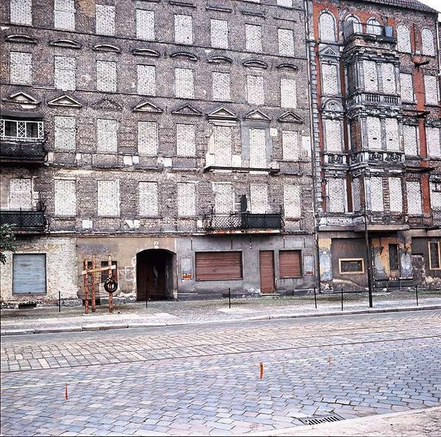 Okna a dveře bytů před Bernauer Straße byly před stržením zazděny a nahrazeny Berlínskou zdí. Byty byly ve východním Berlíně, zatímco jejich dveře a okna se otevíraly do Západního Berlína.