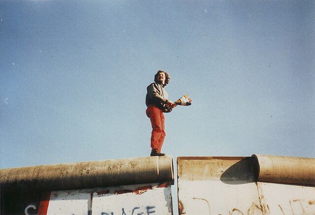 Kejklíř na vrcholu Berlínské zdi 16. listopadu 1989