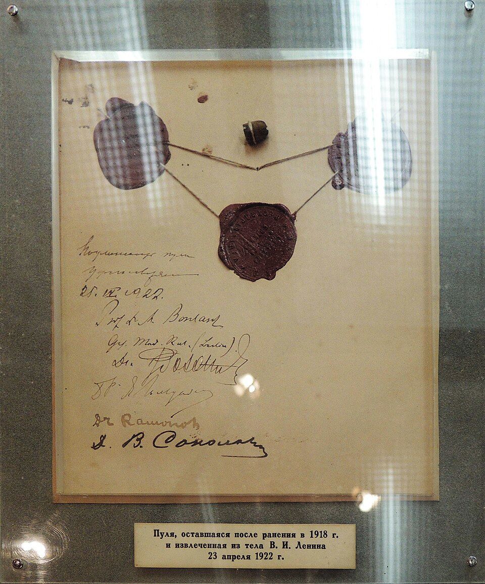 Kulka, která byla vyjmutá při operaci (či při pitvě, o tom se zdroje rozchází) z těla V.I. Lenina