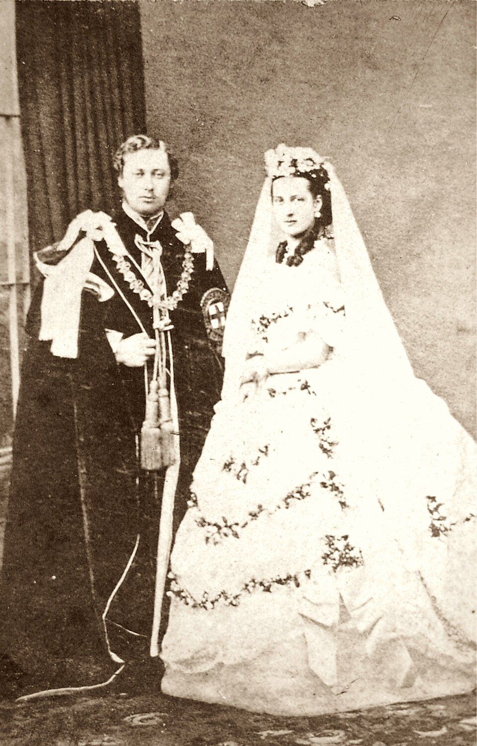 Princ z Walesu na svatební fotce se svou ženou Alexandrou v březnu 1863. Když chtěl Ellen budit, lidé se mu smáli, že by si ji musel také vzít
