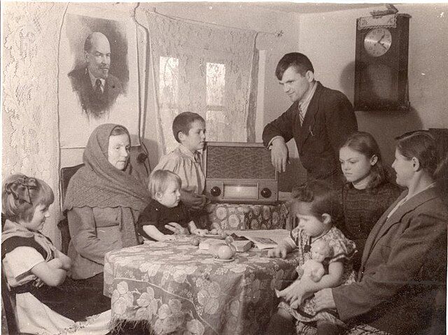 Sovětská rodina s Leninem v obýváku