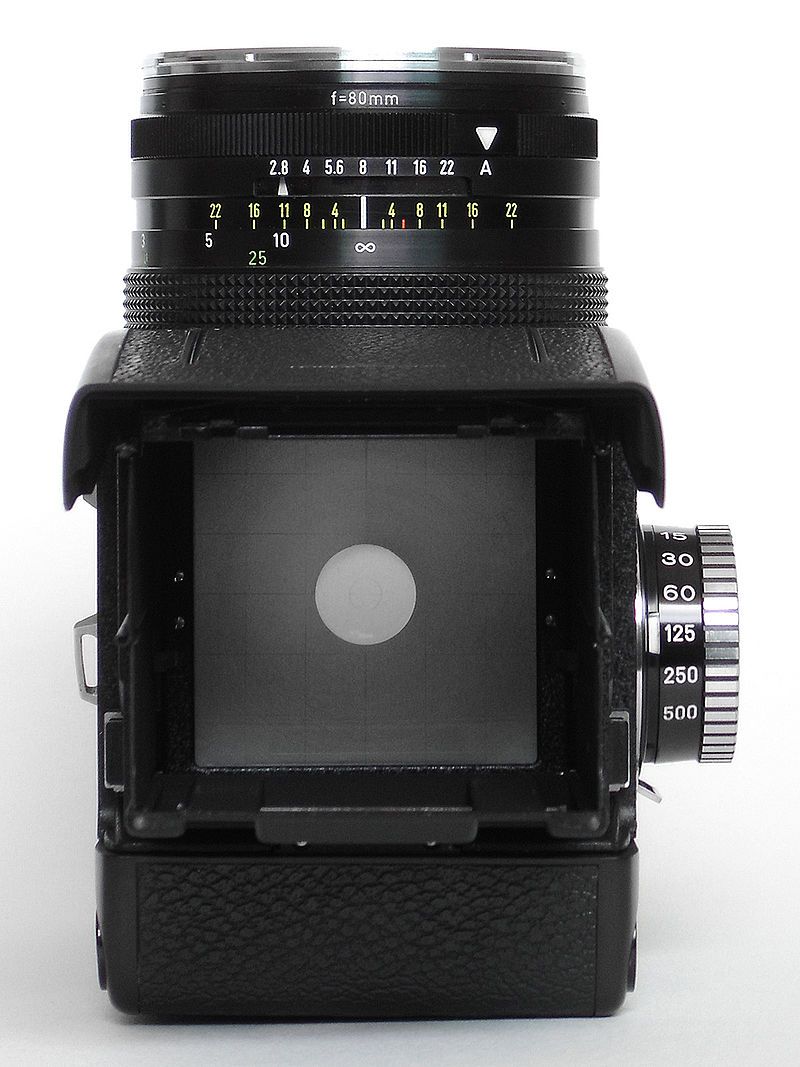 Fotoaparát Rolleiflex SLX, drží se u pasu