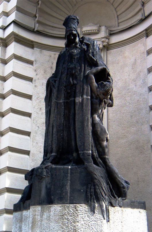 Socha rabiho Löwa od Ladislava Šalouna na Nové radnici v Praze