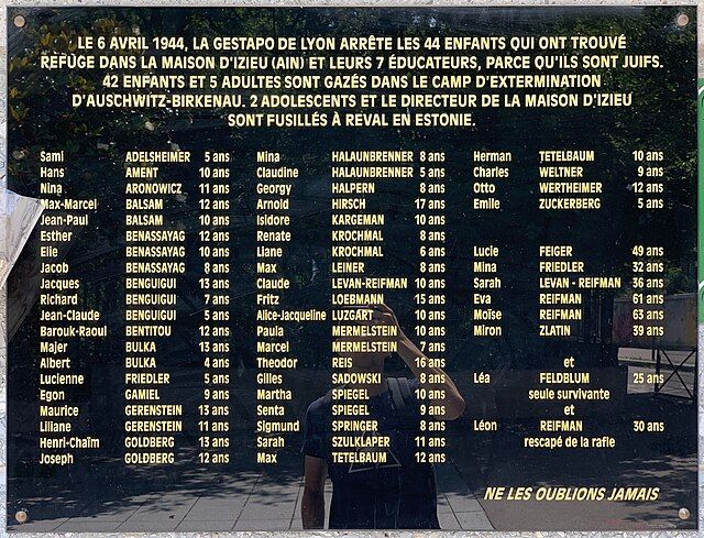 Kam poděly se děti z Izieu, v dým se rozplynuly, však jsou tu s námi a po cestách chodí - zpívá se dodnes v okolních vesnicích
