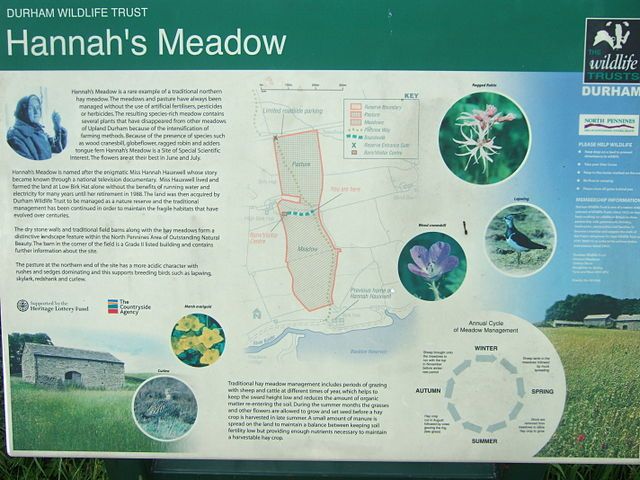 Ale vzniklo něco jiného: Hanniny louky, tzv. Hannah's Meadows. Díky tomu, že Hannah po celá desetiletí používala tradiční metody hospodaření (žádné umělé hnojivo, žádné pesticidy), se z luk stal vzácný biotop. Tato oblast je nyní chráněna jako přírodní rezervace. Tento specifický biotop je domovem 120 druhů rostlin, včetně vzácných květin, a poskytuje útočiště pro ubývající druhy ptáků, jako jsou čejky nebo skřivani.