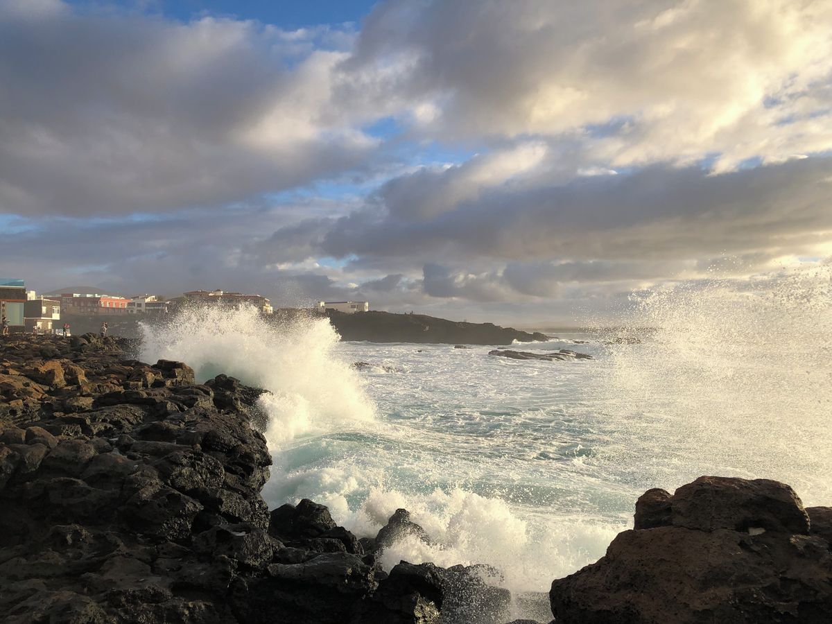 Dechberoucí západ slunce barví oblohu nad El Cotillem, zatímco Atlantik ukazuje svou sílu v solném oparu.