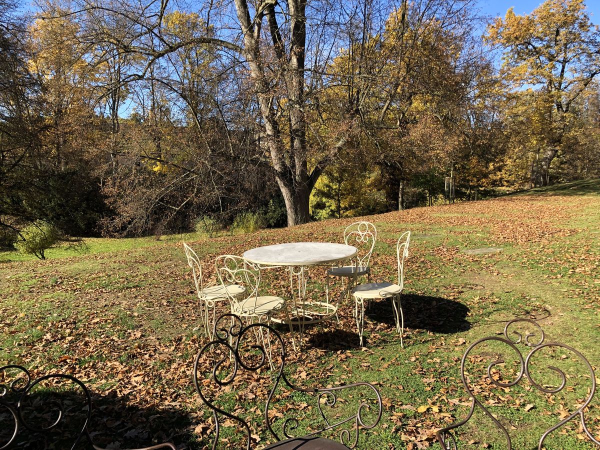 Spolu s Antonem jsme tak prošli celé okolí zámku. Přiznám se ale, že mě osobně se nejvíce líbí v parku, který se rozprostírá nad zámkem. Tenhle kousek krajiny totiž působí klidněji a má takovou přirozenou, skoro až venkovsky poetickou atmosféru. V teplejších dnech je to ideální místo na piknik – v parku se dá posedět na mnoha místech, dokonce i u krytého stolu.