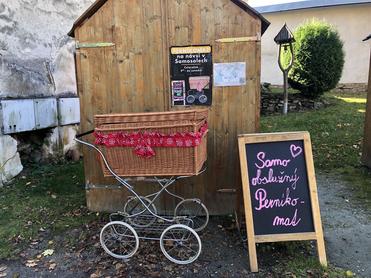 Pokud ale budete mít štěstí, můžete si stejně jako my zakoupit alespoň překrásně malovaný perníček v samoobslužném Perníkomatu, který je otevřen od 9:00 h až do setmění v průběhu celého roku. Většinou však bývá umístěn na návsi v Samosolech, asi 2,5 km pěší trasou nebo tam můžete dojet autem za 6 min.