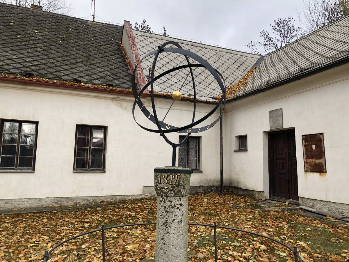 Právě zde nás mimo jiné zaujaly také na první pohled trochu nenápadné Komárkovy sluneční hodiny se třemi kovovými prstenci. Jejich přítomnost dodává místu další rozměr: nejen duchovní, přírodní nebo historický, ale také technický. Pokud si je chcete prohlédnout, najdete je přímo na prostranství kostela mezi budovou fary a někdejší školou.
